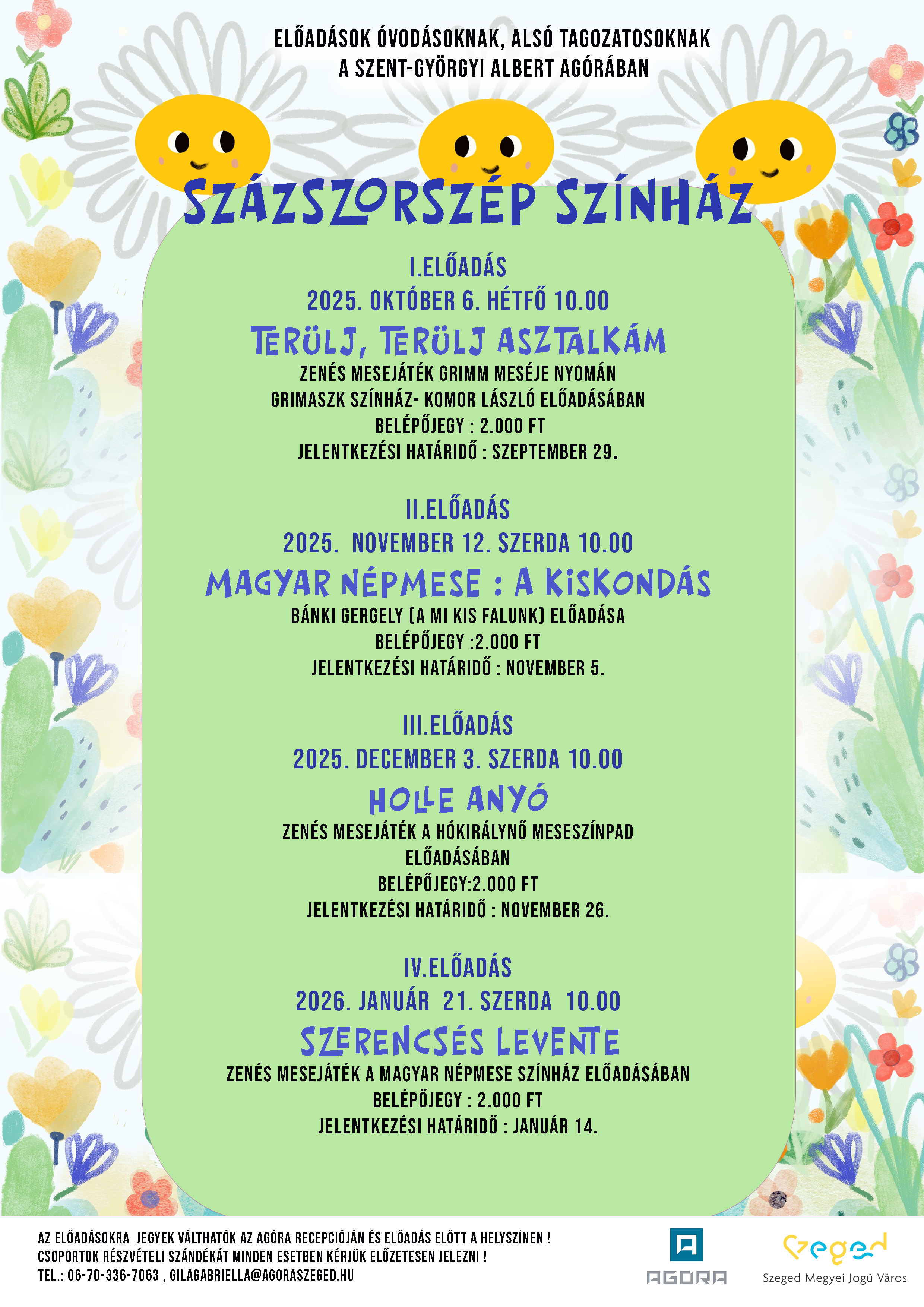 Az előadásokra jegyek válthatók az Agóra recepcióján és előadás előtt a helyszínen.