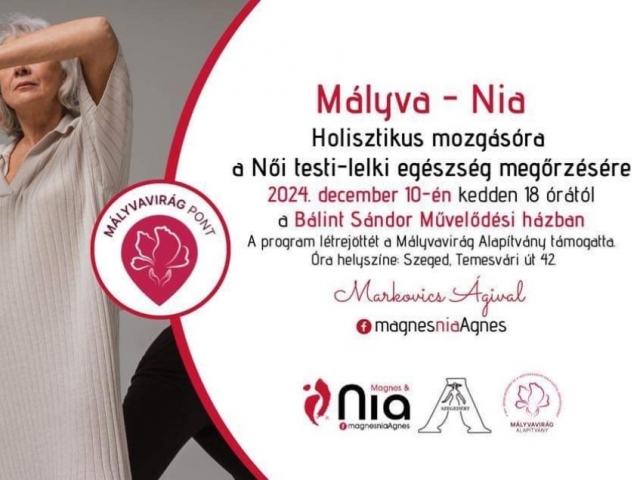 A Mályvavirág Alapítvány életében a betegút kísérés és a prevenciós misszió mellett mindig kiemelt szerepet töltött be a női egészség és a testi-lelki jólét támogatása is. Ennek egyik elemeként indítottuk el decemberben Szegeden a Mályva - Niát, ahol akár preventív, akár rehabilitációs céllal csatlakozni tud bárki, aki a táncon keresztül szeretné megtapasztalni a feltöltődést, és a gyógyulást. Szeretettel várunk mindenkit, aki kapcsolódni szeretne önmagához, a testéhez egy örömteli és komplex mozgásformán keresztül.