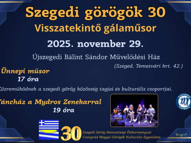 A szegedi görög szervezetek 2025-ben ünneplik megalakulásuknak a 30. évfordulóját.