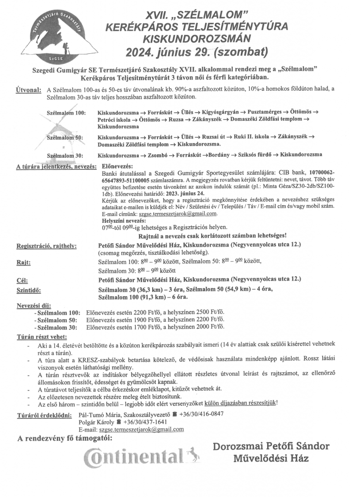 XVII. "Szélmalom" Kerékpáros Teljesítménytúra