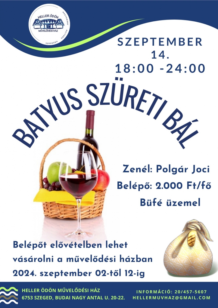 Szeptember 14-én szombaton 18 órától BATYUS SZÜRETI BÁL