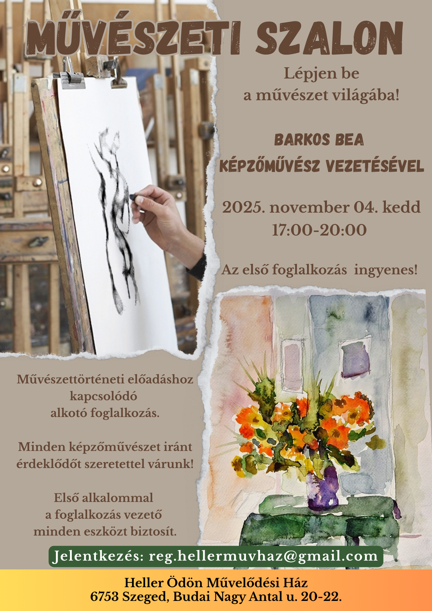 A Művészeti Szalon havonta egy alkalommal várja mindazokat, akik szeretnének elmélyedni a képzőművészetben, új technikákat kipróbálni, és saját alkotásokat létrehozni inspiráló közegben.
