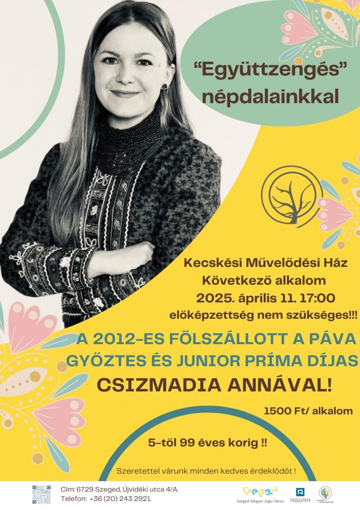 Népi ének tanítás a 2012-es Fölszállott a Páva győztes Csizmadia Annával. 5-99 éves korig. Péntekenként 17 órától!
