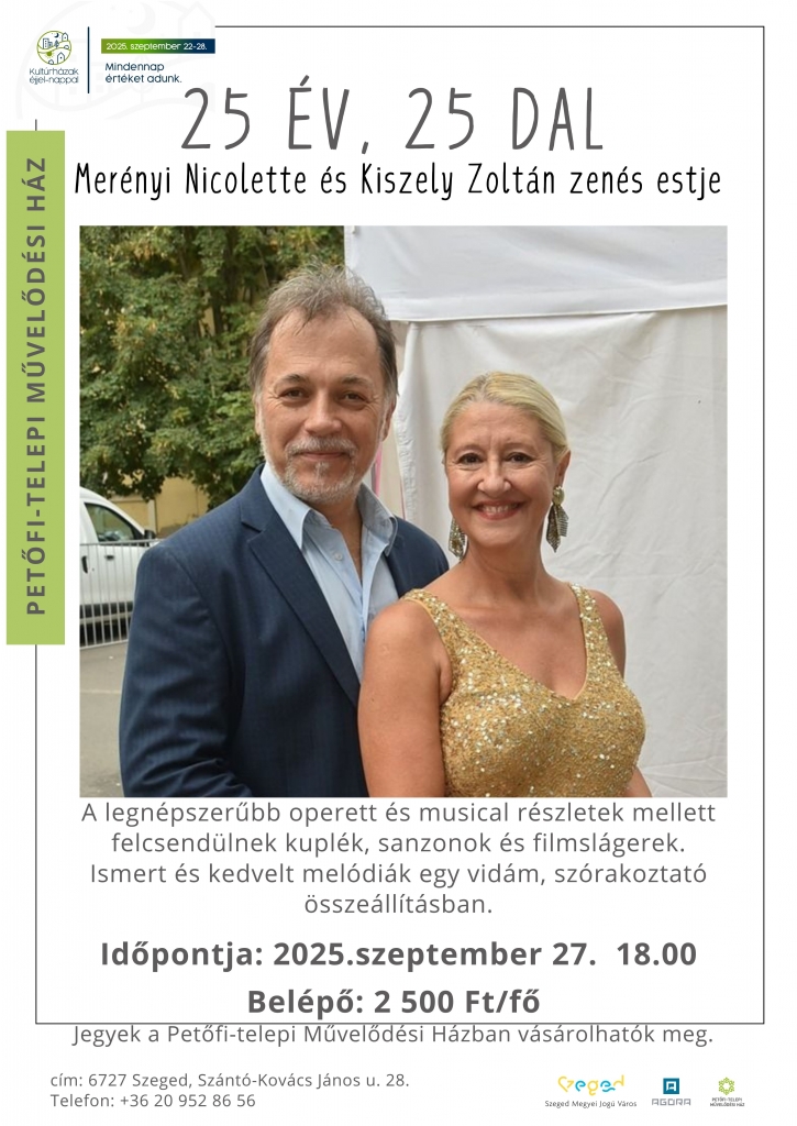 Egy fantasztikus estre várja az érdeklődőket ezen a szombaton Merényi Nicolette és Kiszely Zoltán.