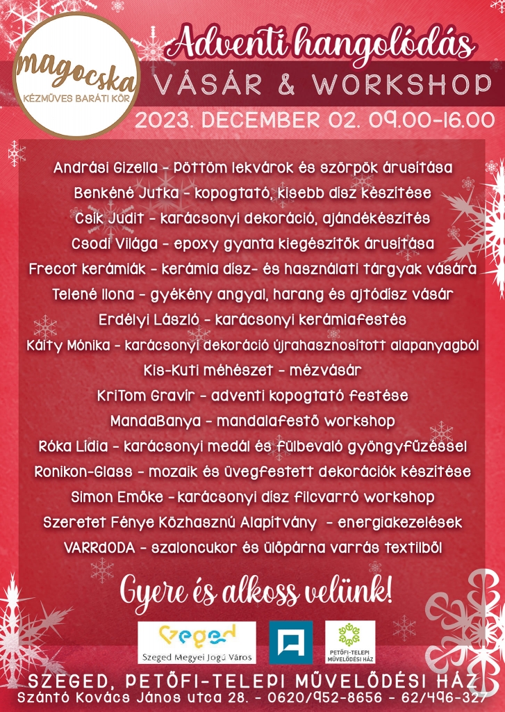 Az Adventre hangolódás jegyében várja az érdeklődőket a Magocska Kézműves Baráti Kör ezen a szombaton.