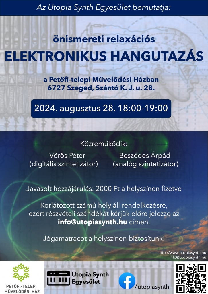 Az Utopia Synth Egyesület bemutatja önismereti relaxációs ELEKTRONIKUS HANGUTAZÁSát.