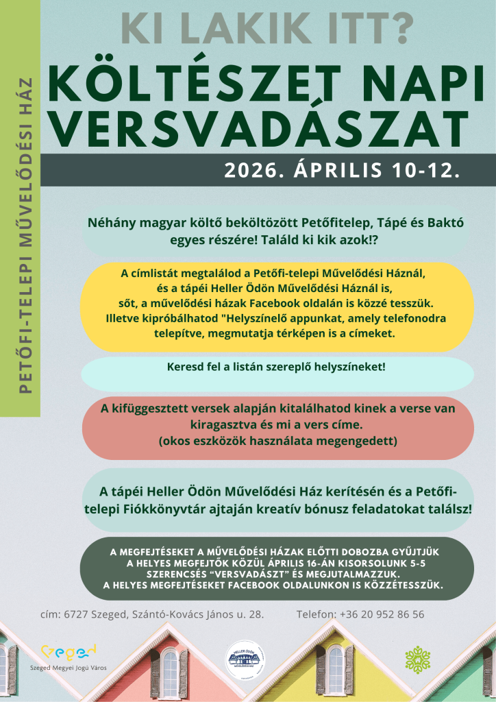 Néhány magyar költő beköltözött Petőfitelep, Tápé és Baktó egyes részére! Találd ki kik azok!?
