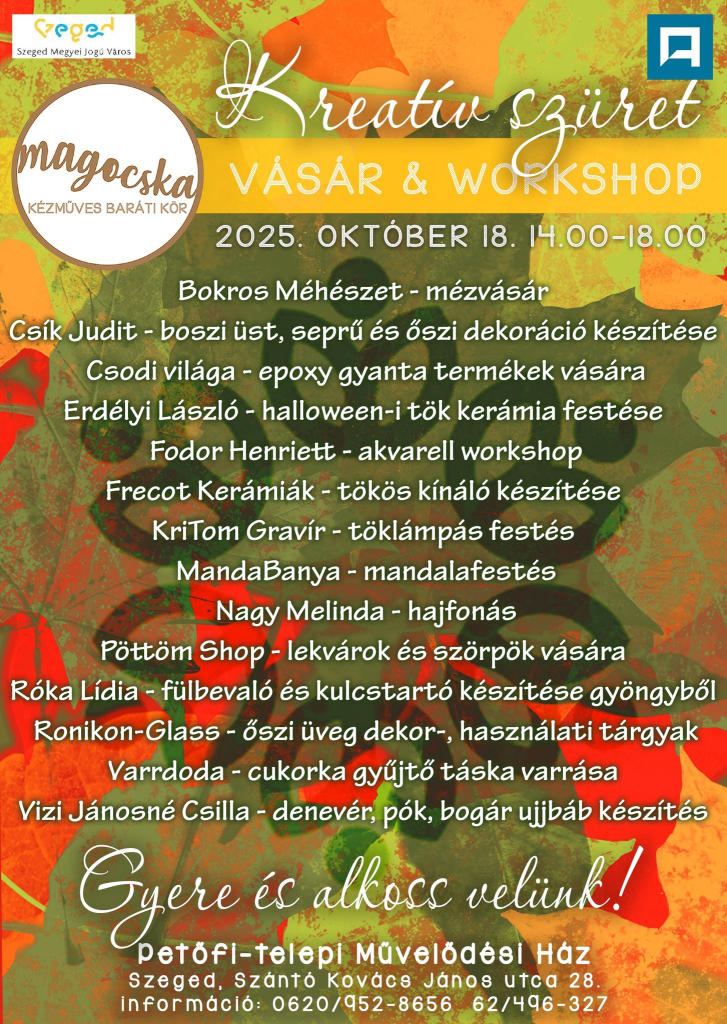 Helyi kézművesekből álló csapatunk közös alkotásra várja szeretettel az érdeklődőket ezen a szombaton.