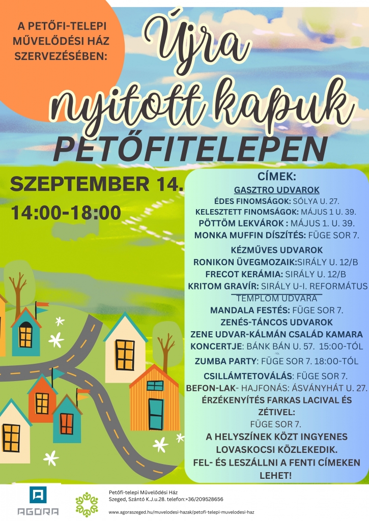 Nyitott Kapuk 2024!! Idén harmadik alkalommal kerül megrendezésre a “Nyitott kapuk" programunk szeptember 14-én 14-18 óráig Petőfitelep területén a már jól bejáratott Garázsvásár mintájára.