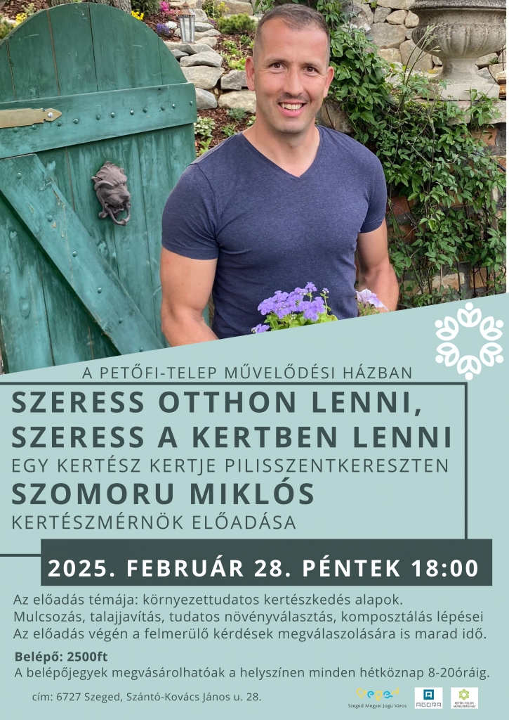 A környezettudatos kertészkedésről tart előadást az "Egy kertész kertje Pilisszentkereszten " - Youtube csatorna népszerű kertésze: Szeress otthon lenni, szeress a kertben lenni címmel.