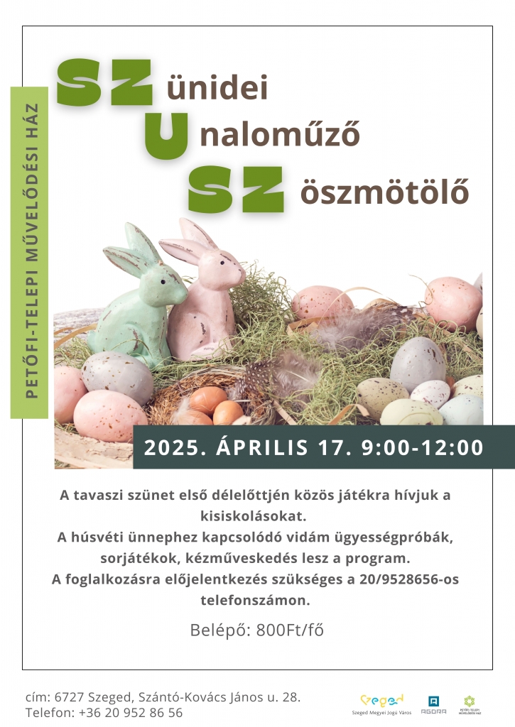A húsvéti ünnephez kapcsolódó vidám ügyességpróbák, sorjátékok, kézműveskedés lesz a program.