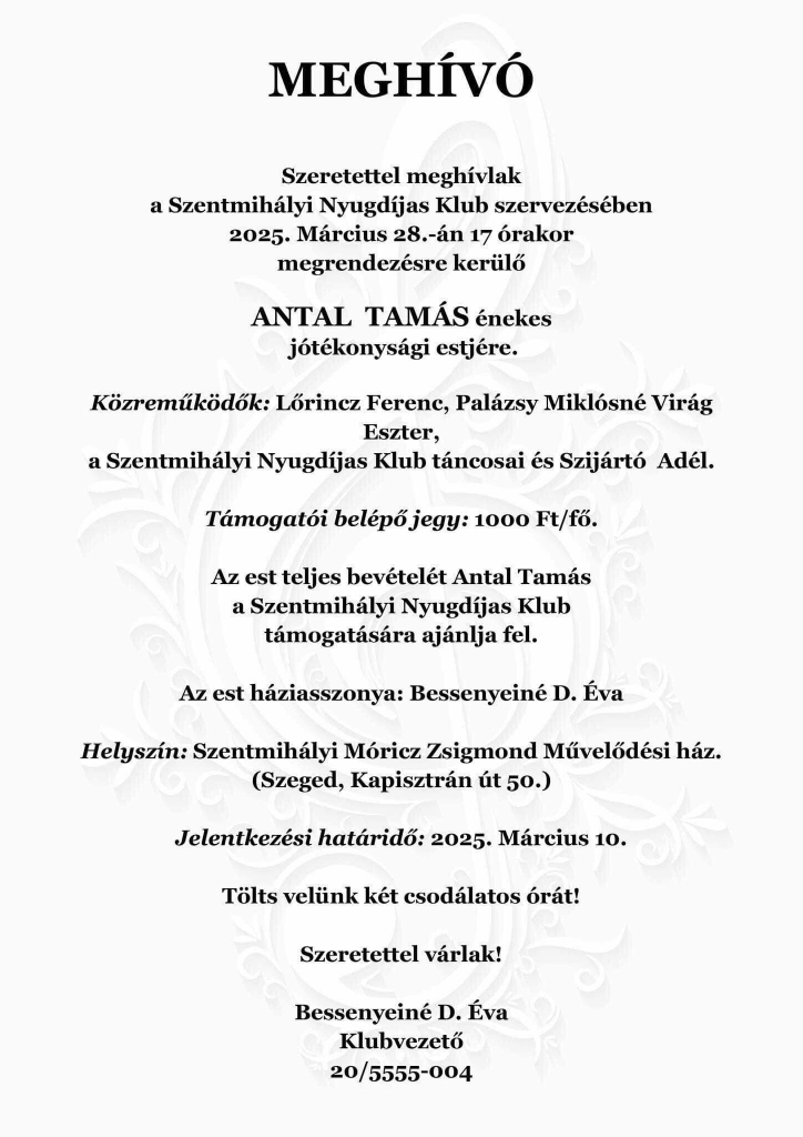 Jelentkezni Bessenyei D. Évánál: 06205555004