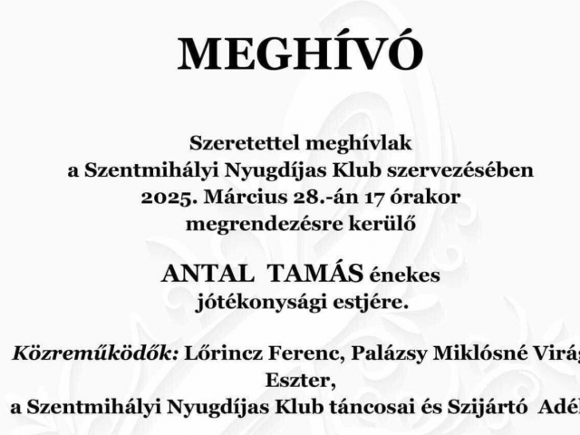 Helyszín: Szentmihályi Móricz Zsigmond Művelődési Ház