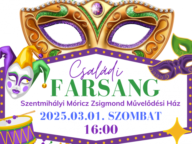 Családi farsang jelmezbemutatóval, vetélkedővel, koncerttel és sok-sok fánkkal.