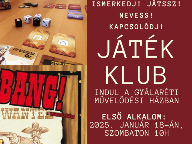 Játék Klub indul a Gyálaréti Művelődési Házban.