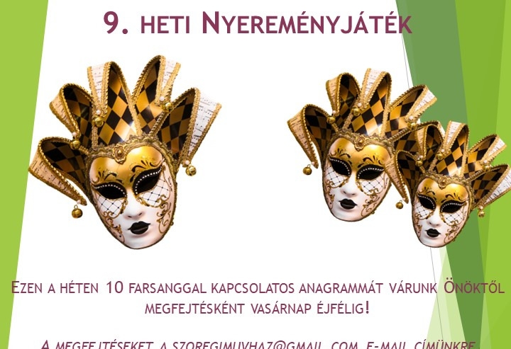 Ezen a héten 10 farsanggal kapcsolatos anagrammát várunk Önöktől megfejtésként vasárnap éjfélig!