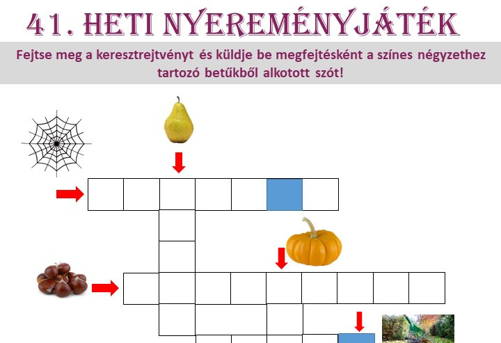 Fejtse meg a keresztrejtvényt és küldje be megfejtésként a színes négyzethez tartozó betűkből alkotott szót!