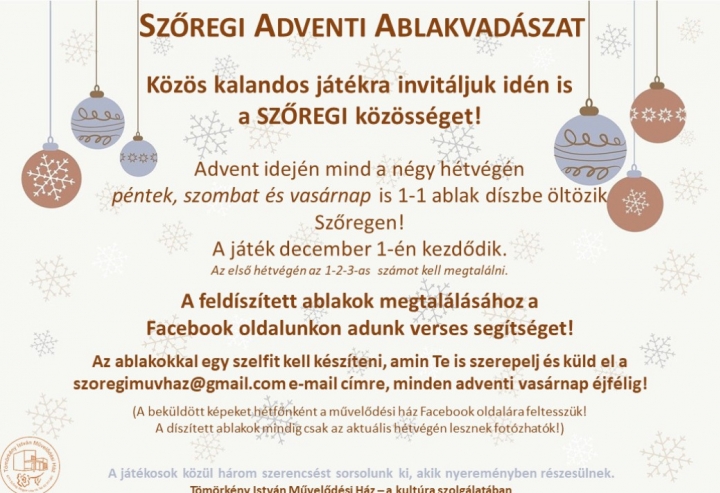 Advent idején mind a négy hétvégén péntek, szombat és vasárnap is 1-1 ablak díszbe öltözik Szőregen!