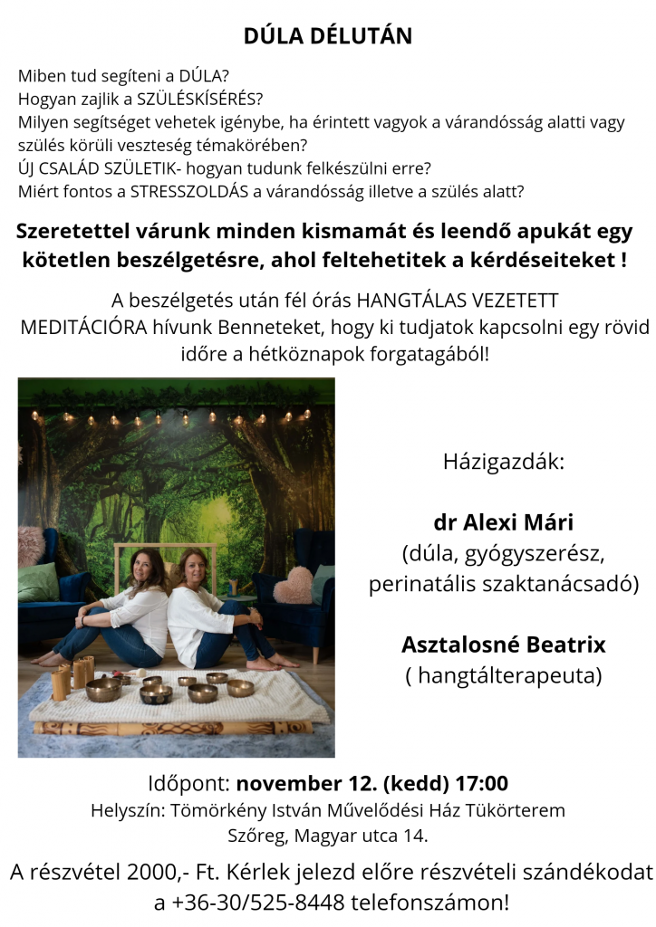 Szeretettel várunk minden kismamát és leendő apukát egy kötetlen beszélgetésre, ahol feltehetik kérdéseiket!