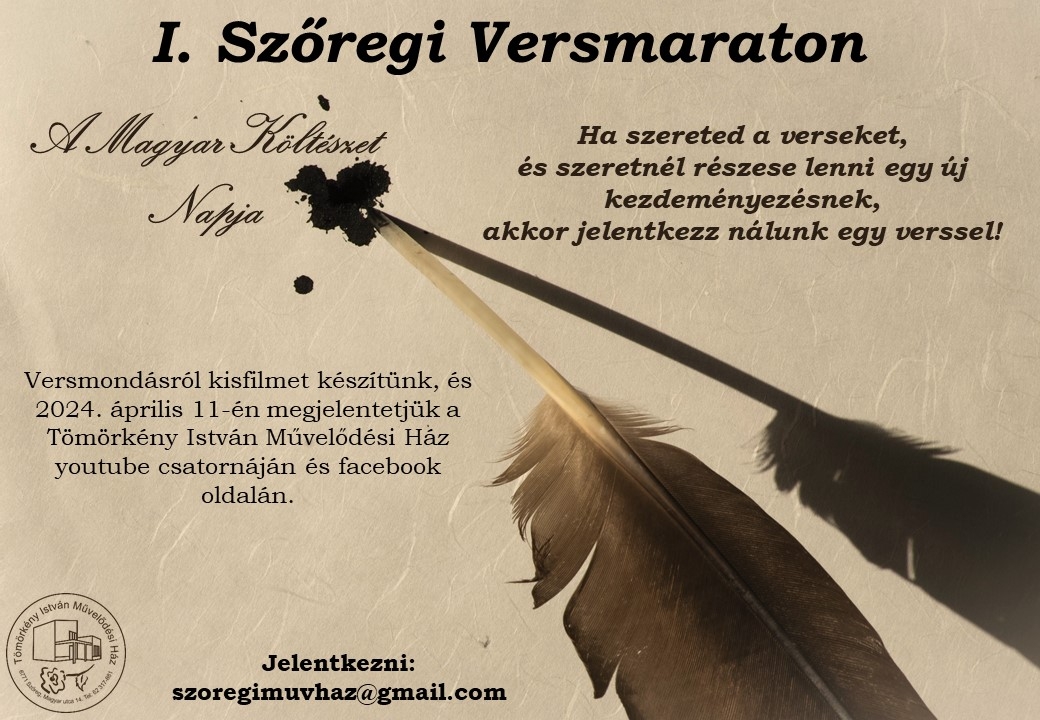 A Magyar Költészet Napja alkalmából szeretnénk megrendezni az I. Szőregi Versmaratont!