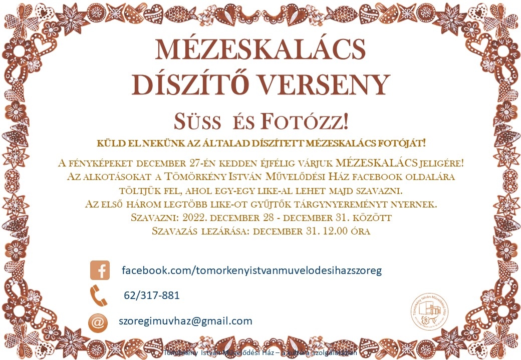 A fényképeket december 27-én kedden éjfélig várjuk MÉZESKALÁCS jeligére!