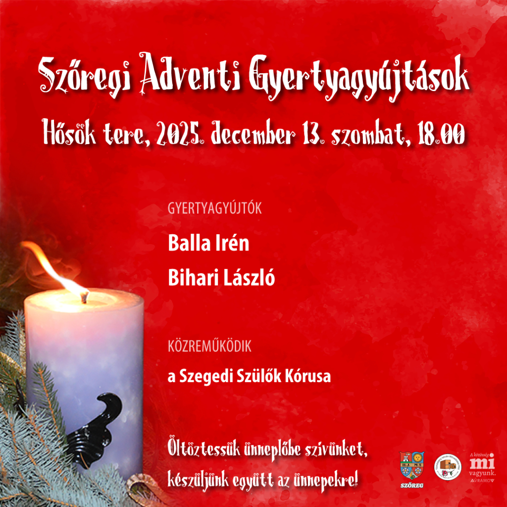 Várjuk szeretettel az érdeklődőket 2025. december 13-án 18.00 órakor  a Hősök terére a 3. Szőregi Adventi Gyertyagyújtásra!