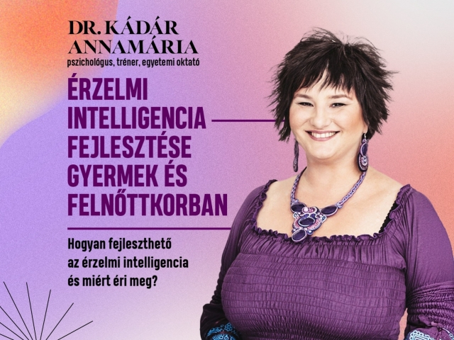 Dr. Kádár Annamária, az Aranykönyv-díjas Mesepszichológia könyvek szerzője, országosan elismert szakember és lenyűgöző előadó, ezen az esten megmutatja, hogyan fejlesztheted az érzelmi intelligenciádat, és hogyan építhetsz erősebb, mélyebb kapcsolatokat – saját magaddal és másokkal is.