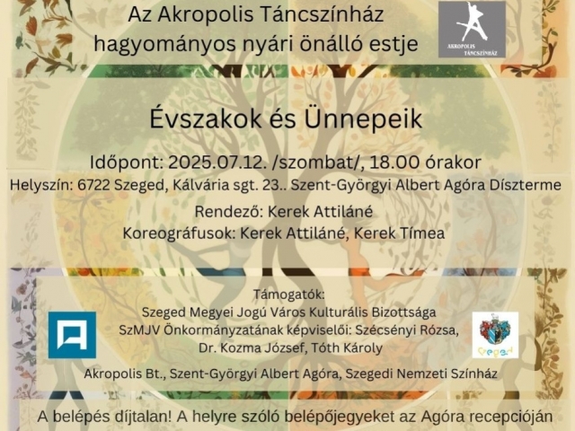 Az Akropolis táncszínház hagyományos nyári önálló estjének előadás értékű nyílt főpróbáját 2025.07.11.-én, pénteken, 2025.07.12.-én, szombaton tartjuk meg, 18 órai kezdéssel.