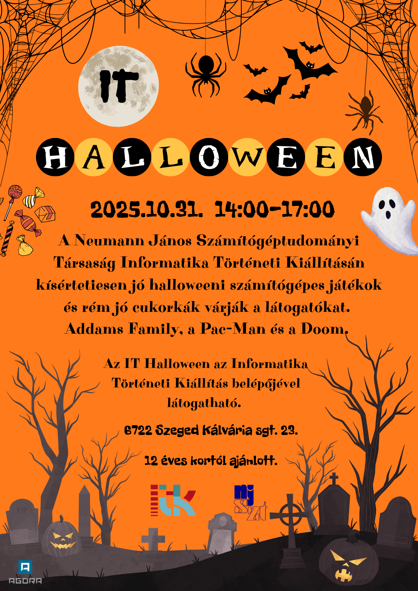 A Neumann János Számítógéptudományi Társaság Informatika Történeti Kiállításán kísértetiesen jó halloweeni számítógépes játékok és rém jó cukorkák várják a látogatókat. Addams Family, a Pac-Man és a Doom.