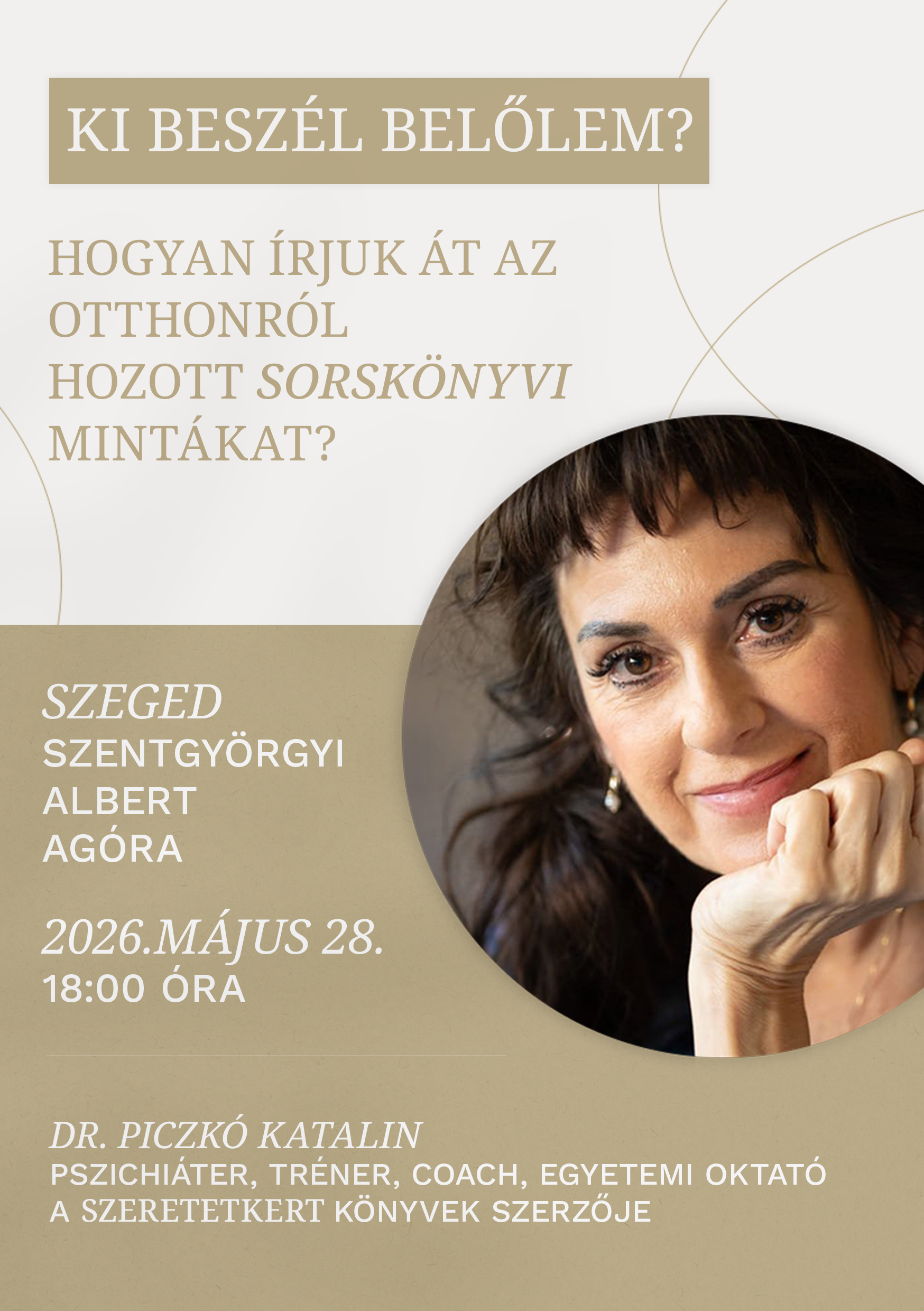 Ebben az előadásban azt nézzük meg, hogyan csúsznak be a korai mintáink a mindennapokba láthatatlan forgatókönyvként: miért válik a szeretetből kontroll, miért lesz a közelségből menekülés, miért tűnik úgy, mintha ugyanazt a vitát futnánk körbe-körbe, csak más díszlettel. És hogyan adjuk tovább mindezt akaratlanul a gyerekeinknek – néha egyetlen félmondattal, egy sóhajjal, egy „na persze…”-vel.