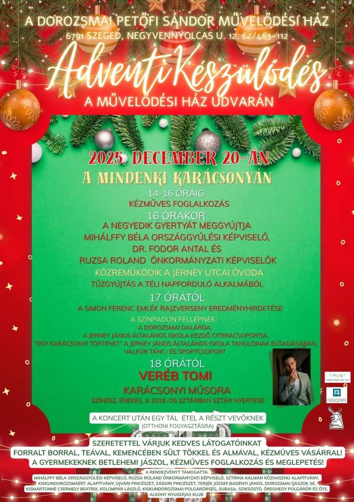 Advent negyedik gyertyagyújtása és Mindenki Karácsonya - Veréb Tomi karácsonyi koncertje