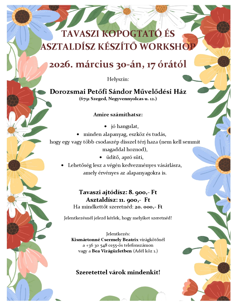 Tavaszi kopogtató és asztaldísz készítő workshop