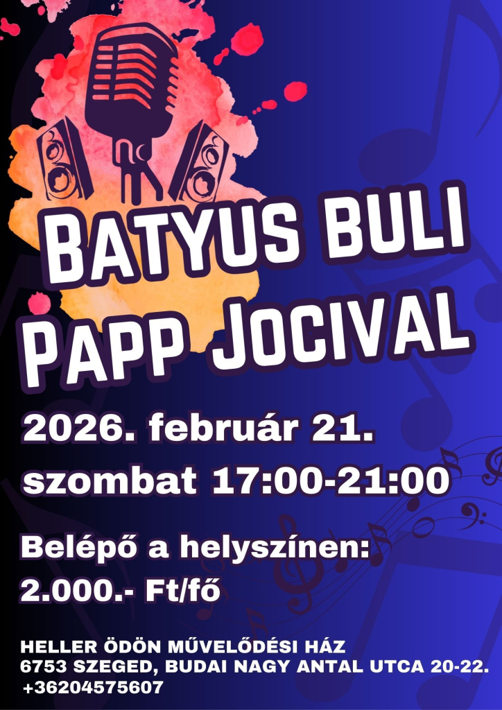 Batyus buli Papp Jocival a Heller ödön Műűvelődési Házban 2026. február 21-én 17 órai kezdettel.