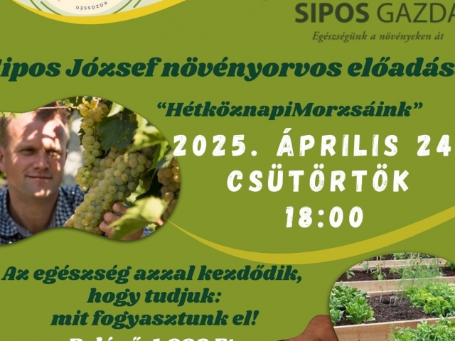 Sipos József növényorvos előadását láthatják 2025. április 24-én csütörtökön, 18 órai kezdettel.