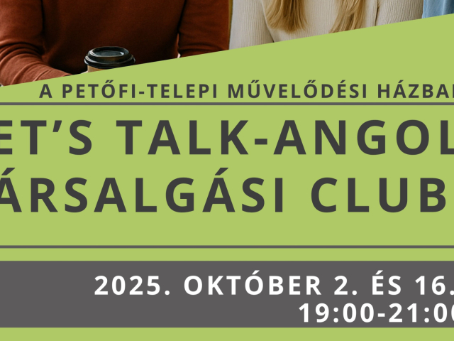 Az elképzelésünk az, hogy kötetlen, társalgásra hívjuk azokat, akik az iskolai évek alatt tanultak angolul, a mindennapokban azonban, már nem használják a nyelvet és szeretnék tudásukat formában tartani. Kötetlenül, egy egy téma mentén folyna a társalgás(film, könyv, zene, játék). A program offline, el kell jönni a Petőfi-telepi Művelődési Házba.