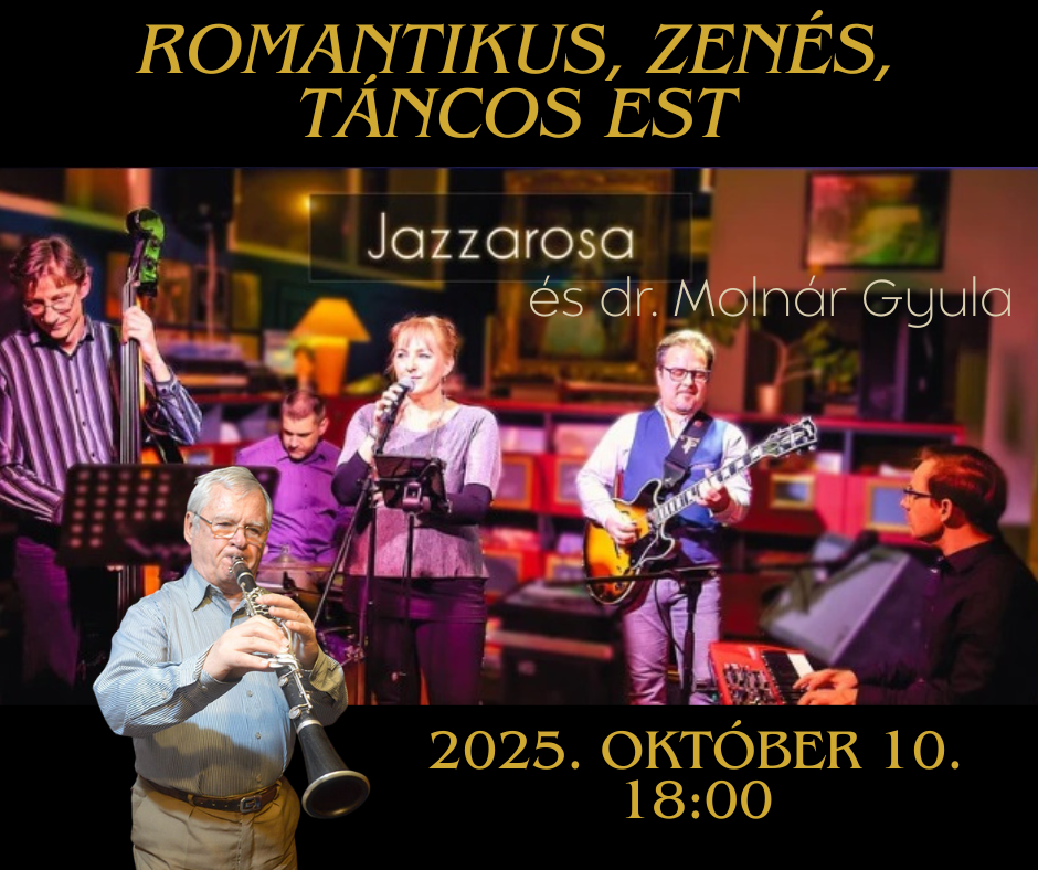 Csatlakozzon hozzánk, és élvezze a Jazzarosa együttes élő koncertjét, valamint dr. Molnár Gyula különleges vendégszereplését!