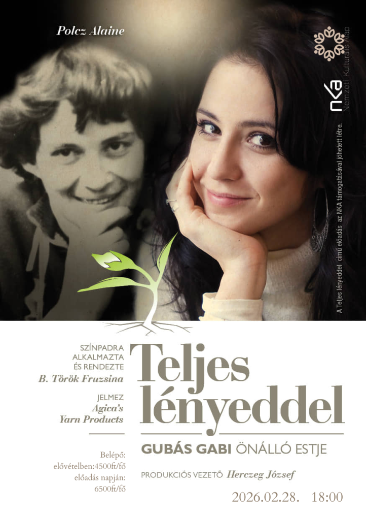 A Teljes lényeddel című színházi est Polcz Alaine egész életén kísérli meg a hallgatóságot végig vezetni. Egészen fiatal korától az utolsó napokig.