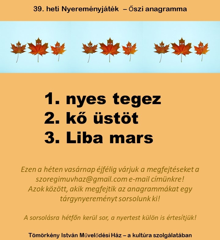 39. heti Nyereményjáték – Őszi anagramma