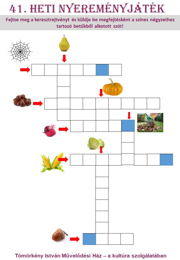 Fejtse meg a keresztrejtvényt és küldje be megfejtésként a színes négyzethez tartozó betűkből alkotott szót!