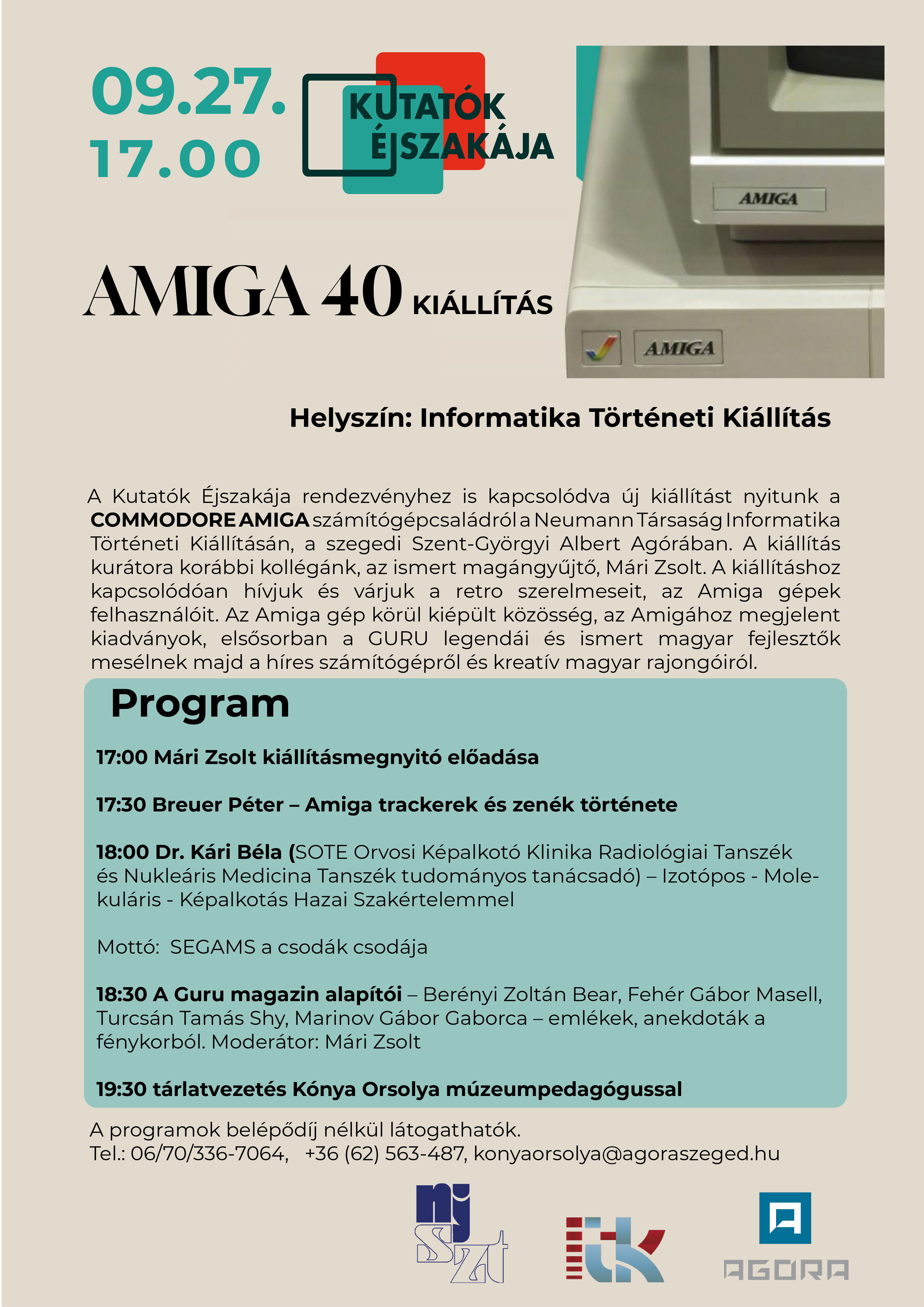 A Kutatók Éjszakája rendezvényhez is kapcsolódva új kiállítást nyitunk a Commodore Amiga számítógépcsaládról a Neumann Társaság Informatika Történeti Kiállításán, a szegedi Szent-Györgyi Albert Agorában.