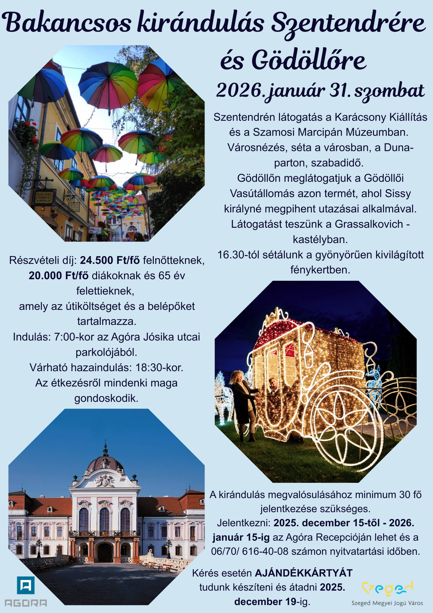 Jelentkezni: 2025. december 15-től - 2026. január 15-ig az Agóra Recepcióján lehet és a 06/70/ 616-40-08 számon nyitvatartási időben.