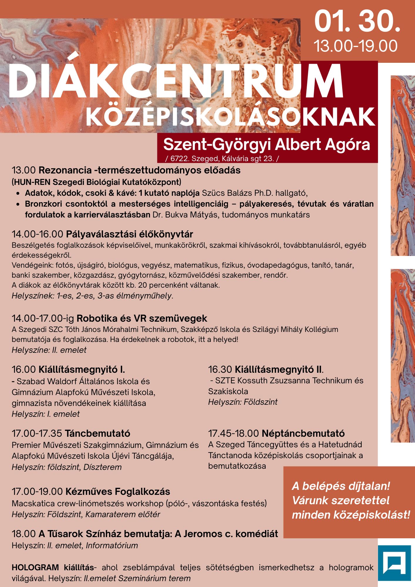 A belépés díjtalan! Várunk szeretettel minden középiskolást!