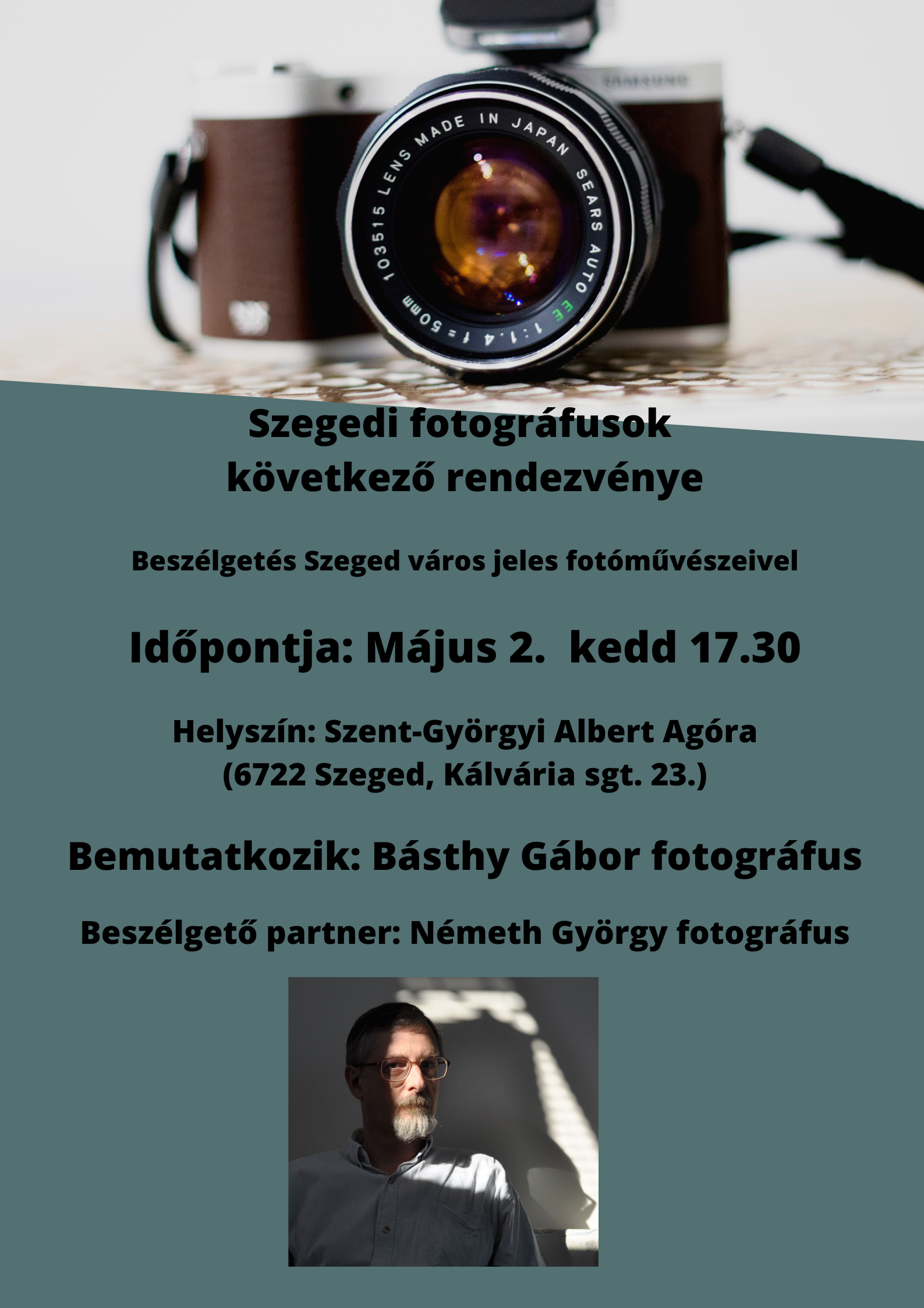 A szegedi fotográfusok és a fotó iránt érdeklődők találkozója, avagy „terítéken” az objektív. Beszélgetés Szeged város jeles fotóművészeivel.