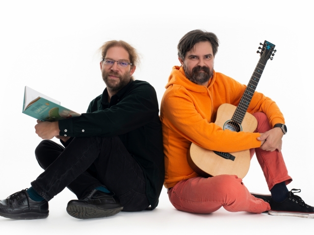 Varró Dániel költő és Molnár György gitáros zenés irodalmi estje versekkel, zenével, sok humorral és játékossággal.