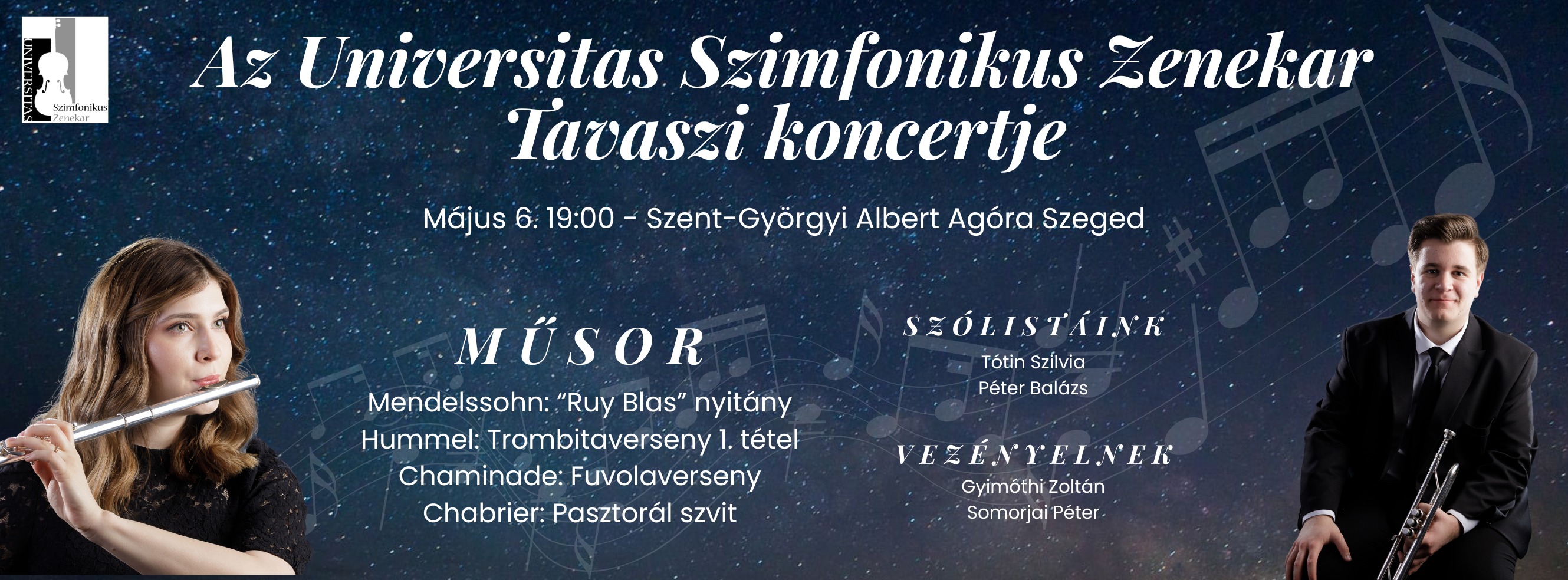 Az Universitas Szimfonikus Zenekar Tavaszi koncertjére 2026. május 6-án kerül sor hagyományos játszóhelyünkön, a Szent-Györgyi Albert Agórában, Szegeden.